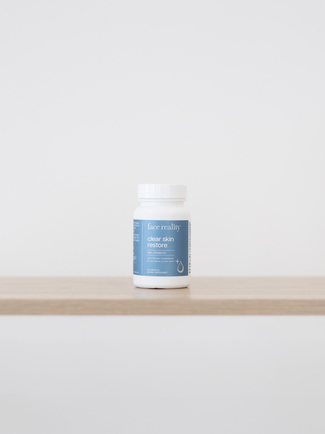 Designed by the #1 Professional Acne Brand, Clear Skin Restore contains Zinc and a proprietary Probiotic Gut-Skin Axis Blend to help clear skin while supporting overall health and wellness.